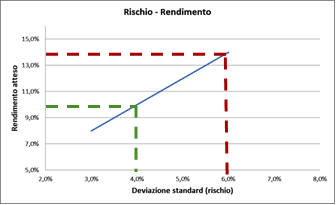 b) chi si aspetta un rendimento del 14% deve accettare un rischio del 6% (rosso)